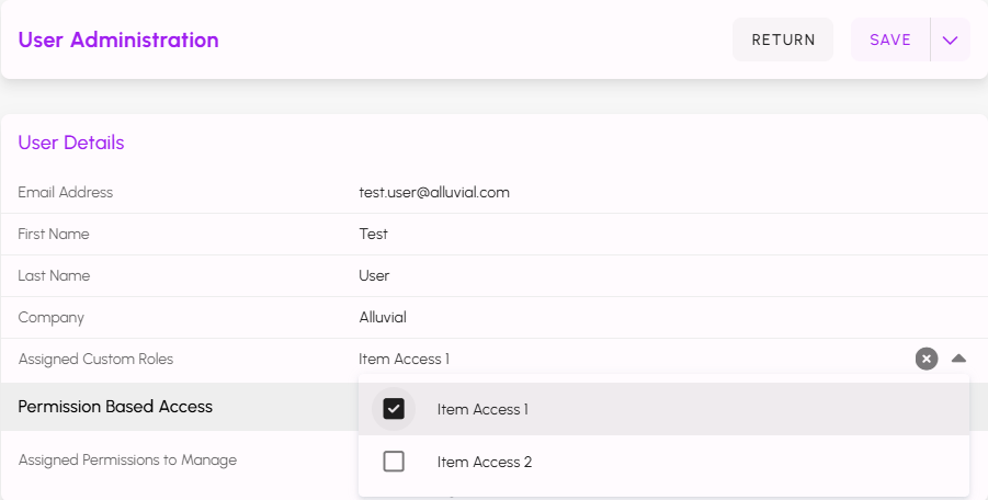 Creating the Custom Role and add entities to it is only the first step. To enforce access control, the Custom Role must be assigned to specific people within your project. This is done by navigating to User Administration and selecting the user you want to assign the role to.