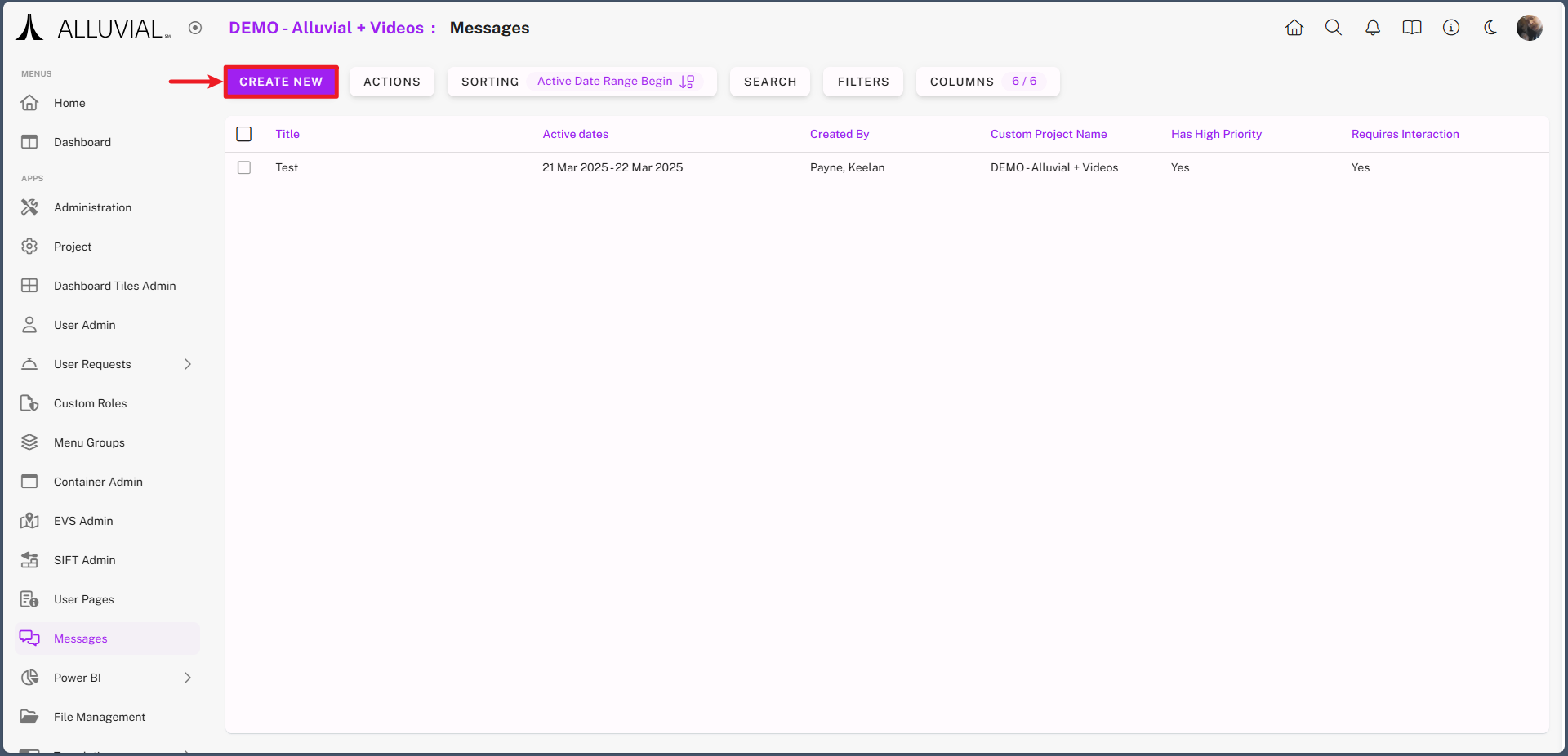 The Messages feature allows project administrators to send notifications to all users within a project.