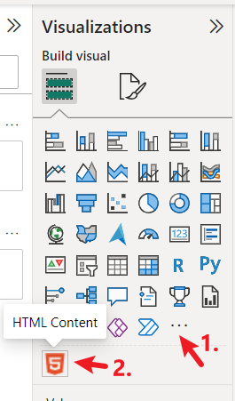 Add the "HTML Content" visual to your Power BI dashboard. Click the visual to add it.