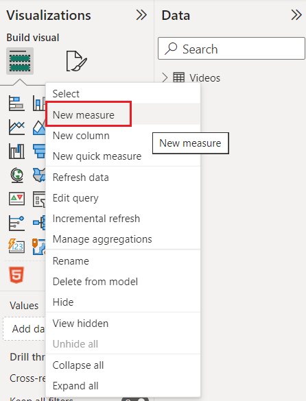 Right-click the table and select New Measure:
