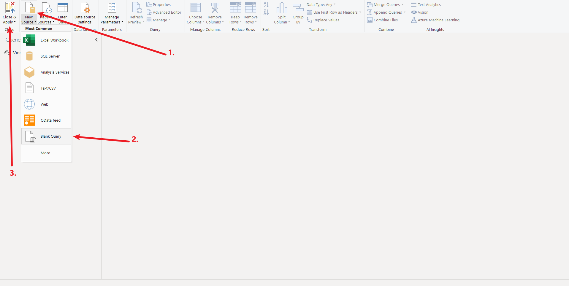 In Power Query Editor, create a blank query and apply changes: