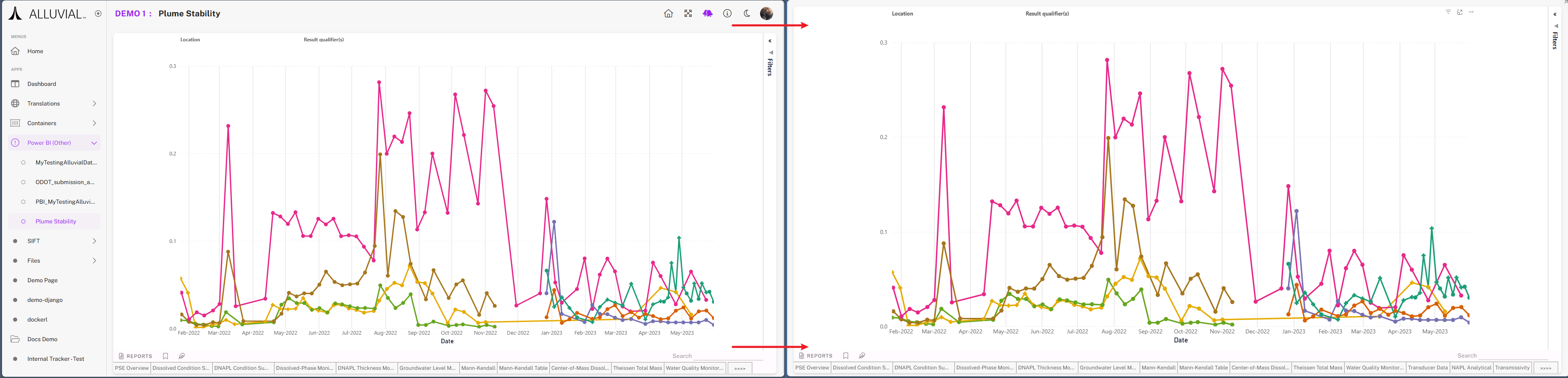 - Page-level and report-level filters defined in Power BI Desktop/Service before hosting the report on Alluvial remain active.