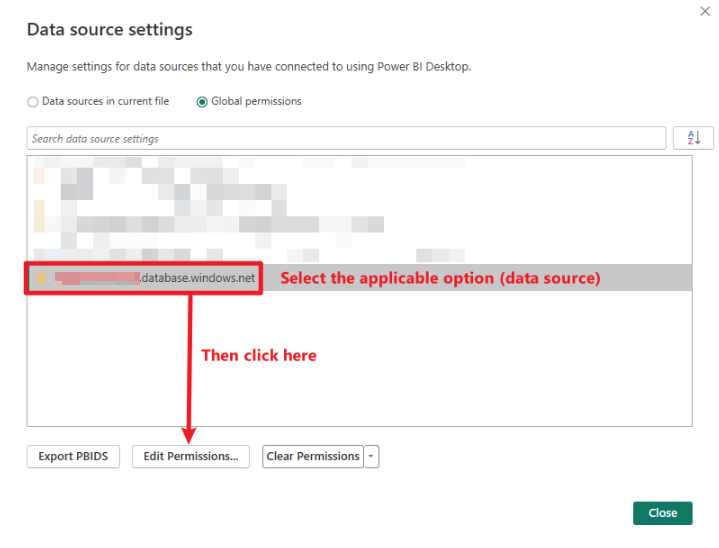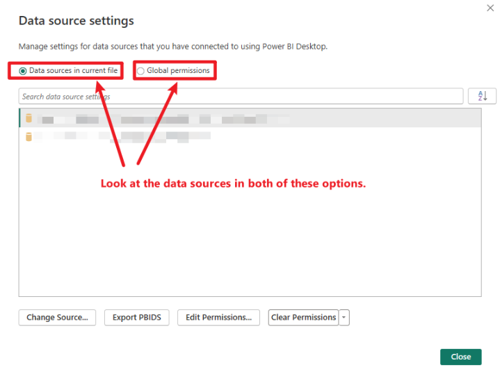 Power BI Data Source Settings
