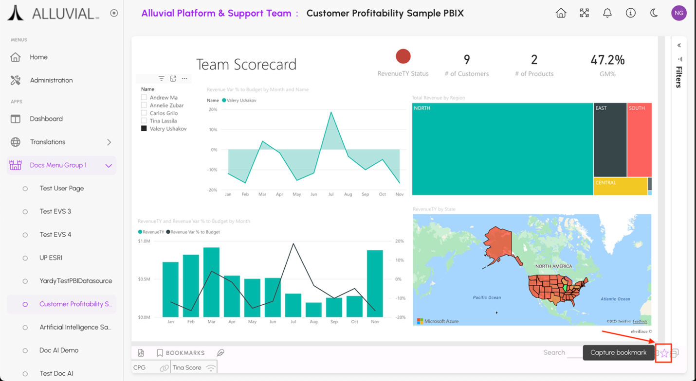 - Capture Bookmark – Creates a new bookmark from the current report state