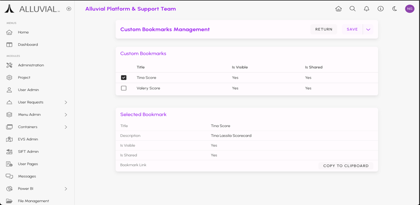- Clear Bookmark – Removes all bookmark-applied filters and returns to the default view