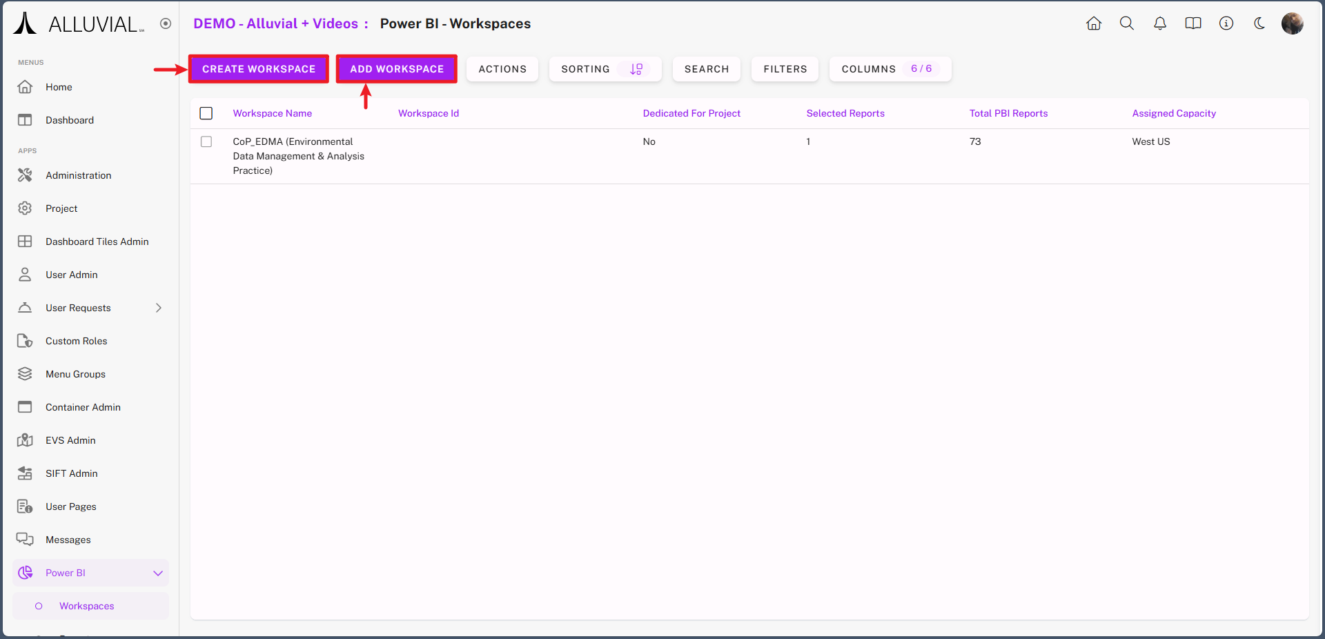 IMPORTANT: Only one new workspace can be created per Alluvial project.