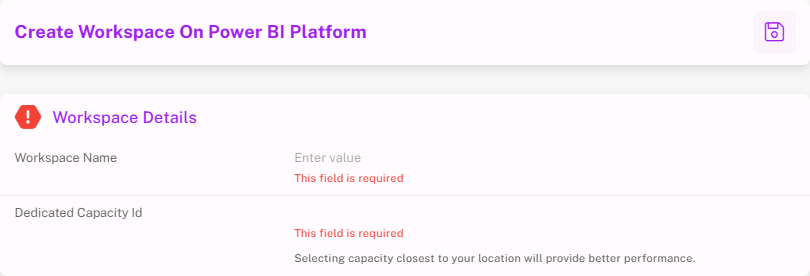 If you don’t already have a Power BI workspace, you can create one directly from Alluvial.