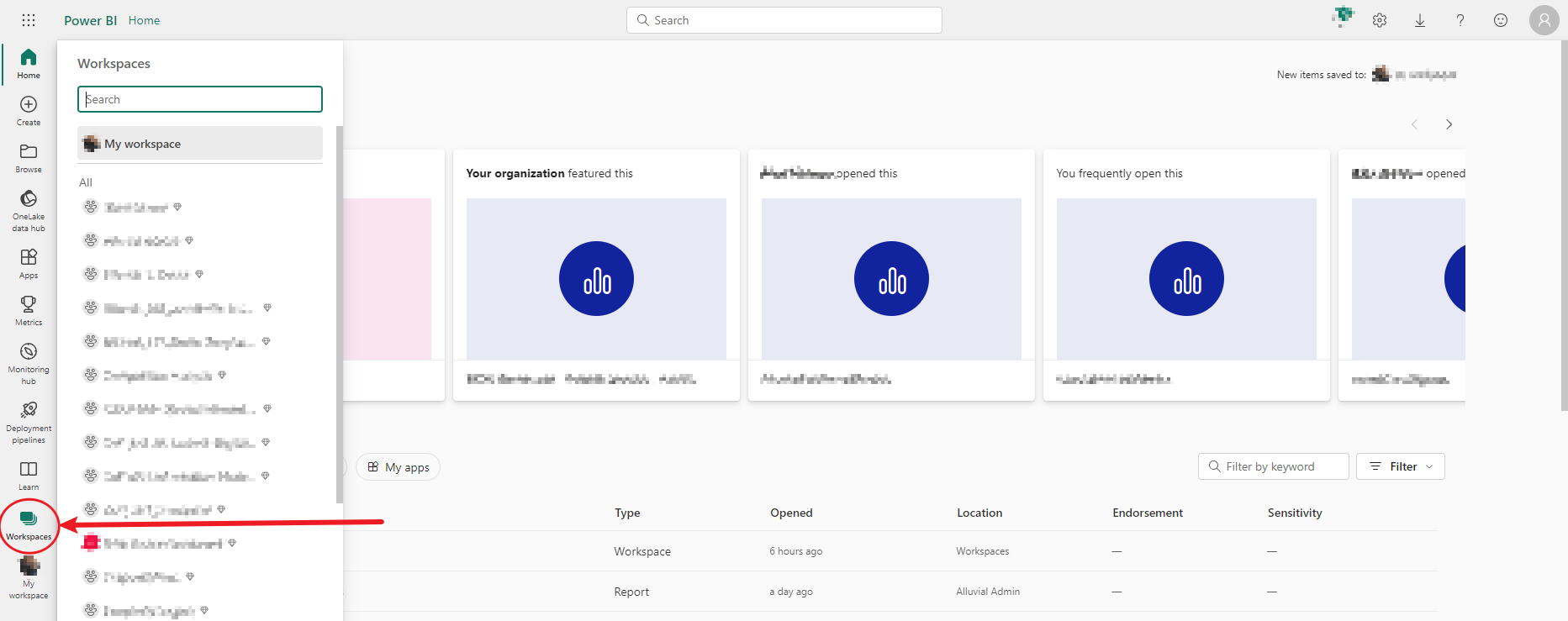 (This example uses Power BI Workspaces.)