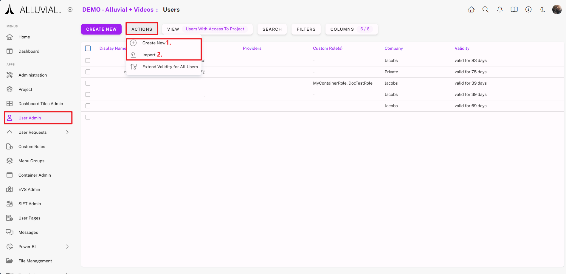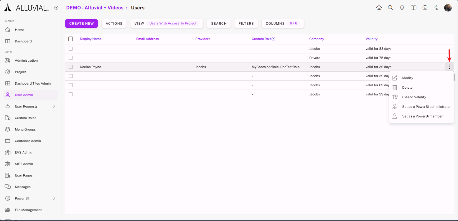 - Alluvial automatically removes inactive users after a defined validity period (see User Validation for extension options).