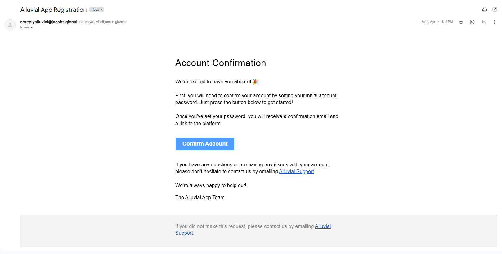 After password setup, users receive a welcome email with a link to log in.